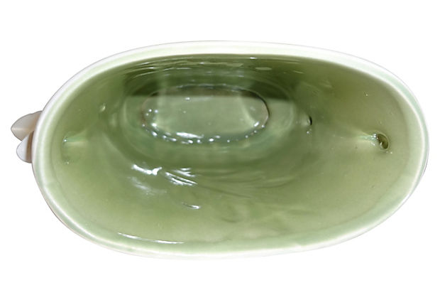 Today’s Super Special vase comes from Abingdon Potteries, Inc. of Abingdon, Illinois which began manufacturing bathroom fixtures in 1908. By 1934 it had begun making a line of molded commercial art wares, dinnerware & cookie jars. That continued until 1950 when it returned to making sanitary wares only & stopped producing other lines. The “Shell” line was issued throughout the 1940’s. This oval Seashell vase (mold #507) has a high gloss sea-foam green glaze and is bottom marked with the Abingdon stamp. This vase has fine detailed workmanship.