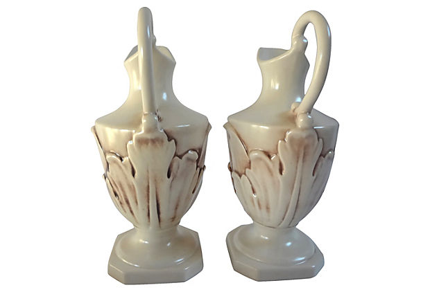 Rum Rill for Red Wing Pottery, c.1932-37, Pair of 10.25" Ewers w/ Embossed Acanthus Leaves, Mold #448, Special Holiday Price $200.00 for the Pair
