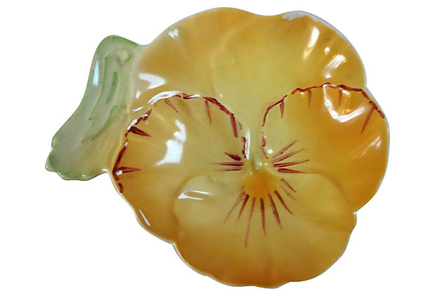 c.1938-63 by Mr. White in 1938, 4.5″ x 4″ Pansy Plate or Pin Dish, Item #600, $35.00 SOLD