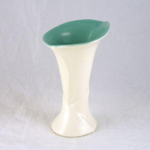 Catalina Pottery by Gladding McBean c.1937-43 7″ Cream w/ Green Interior Calla Lily Vase Mold #C333, $85.00