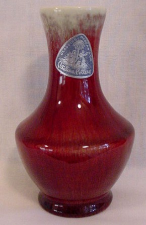 Catalina Pottery by Gladding McBean c. 1937-43 5″ Oxblood Bud Vase with Original Label, $205.00 SOLD