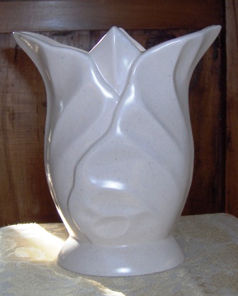 Catalina Pottery by Gladding McBean c.1937-43 6.5″ Floral Petal Vase in Cream with Turquoise – Mold # C335, $79.00
