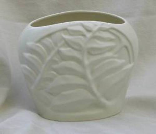 Catalina Pottery by Gladding McBean c. 1939 7.5″ Satin Ivory Vase with Raised Tropical Leaves Mold # C342, Extremely Rare, Issued for ’39 Golden Gate Expo, $250.00 SOLD