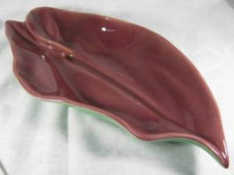 Catalina Pottery by Gladding McBean c.1937-43 16″ x 8″ Tropical Leaf Platter in Purple w/ Green Base, $89.00