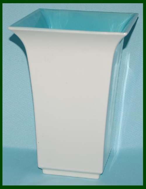 Catalina Pottery by Gladding McBean, c.1937-43, 10.25" Flared Square Rim Vase in White & Turquoise, Mold #428, $195.00 SOLD