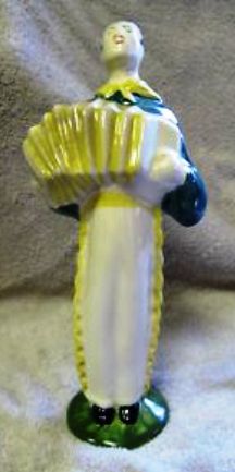 Red Wing Pottery, c.1950’s 10.5″ Hand painted “Accordion Man” by Belle Kogan, # B1417, $150.00 SOLD