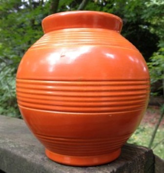Stangl Pottery of Trenton, New Jersey, c.1935-37 7″ Ribbed Ball Vase in Tangerine with Green Interior, $115.00 SOLD