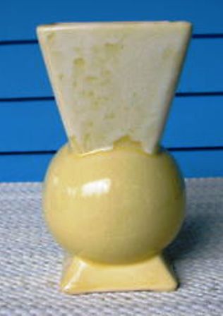 Red WIng Pottery, c.1935-45 10.75" Art Deco Machine Age Yellow with Grey Interior Vase (original label) Mold #405, #125.00 SOLD