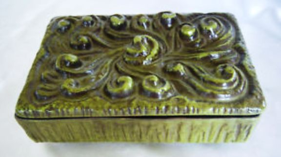Van Briggle Pottery, c.1970-80 3″ x 4.25″ Hand Thrown “Original” Low Vase with Floral Design Imprint, $ 85.00 SOLD