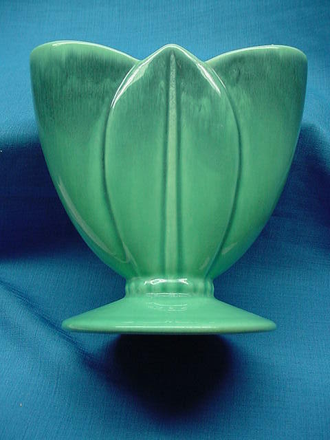 Royal Haeger Pottery, c. 1950’s 7″ Tulip Shaped Triple Leaf Vase # R 1523, $60.00