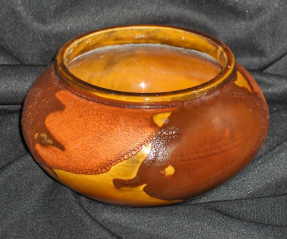 Royal Haeger Pottery, c.1976 4″ x 4.75″ D Marigold Agate Earth Graphic Wrap Bowl Mold #3175x, $45.00