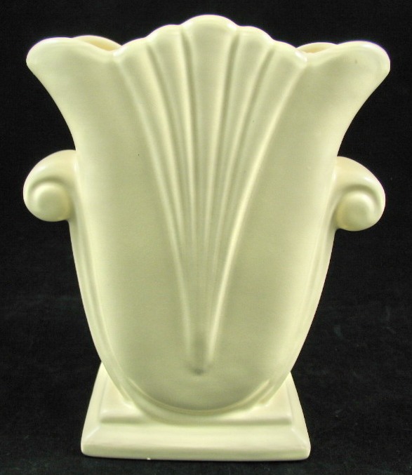 Haeger Pottery, c. 1980’s 9.5″ x 7.5″ x 4″ Tulip Scroll Off White Vase, $65.00