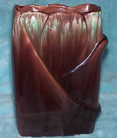 Royal Haeger Pottery, c. 1952-60 8″ Tulip Vase in Brown/Green Drip Glaze Mold # R653, $40.00