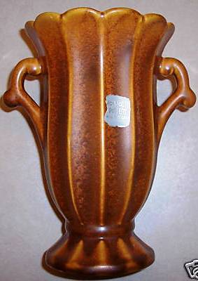Circa 1930s 7.25″ double-handled scalloped rim vase w/original label, $68.00