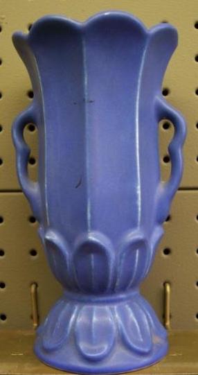 Circa 1930s 8″ double-handled scalloped rim vase w/original label, $62.00