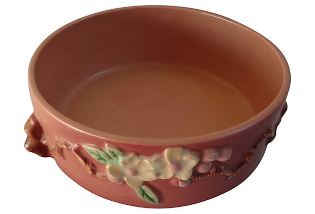 Roseville c. 1948, “Apple Blossom”, 6.25″ Low Bowl, Mold #326-6, $239.00