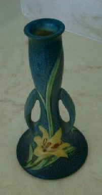 c.1946 Roseville “Zephyr Lily” Blue Bud Vase, #201-7, $179.00 SOLD