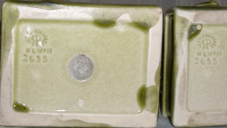 The pair, created from mold # 2655, stand 5.75″ high and are in very good condition. There are no cracks, chips, glaze flakes or previous repairs. There is some crazing that is to be expected from items this age. They are referenced on page 228 of A Price Guide to Rookwood edited by L-W Book Sales. The mold was originally created in 1935. The 1999 suggested value was $500.00 to $550.00. We are offering this pair at a special Holiday price of $375.00. (Good until December 31, 2009.)