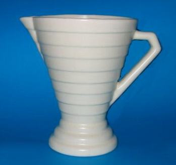 Catalina Pottery by Gladding McBean c.1937-43 7.25" Ribbed Fan Vase in White w/ Turquoise Mold # C310, $115.00 SOLD