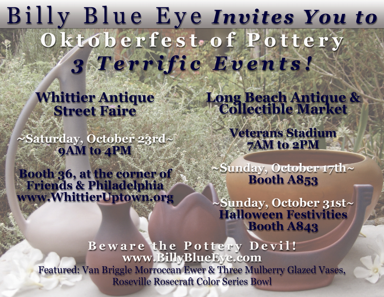 Billy Blue Eye Pottery is once again proud to be a part of this Saturday’s Whittier, CA Spring Street Faire. The twice annual celebration is held in Uptown Whittier from 9 AM until 4 PM. We will be located in booth # 36 which is located at the intersection of Philadelphia & Friends Streets.