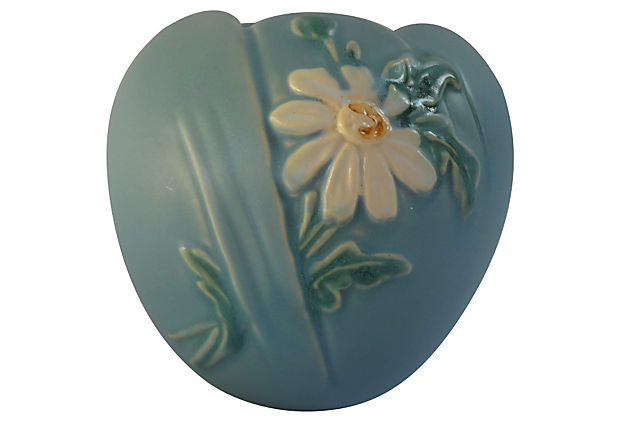 Weller Pottery, c.1935-39, “Bouquet,” 5.5″ Vase – Bowl w/Daisy, Mold #B-3, $115.00 (Minor Rust Stains on Bottom & Interior of Vase)
